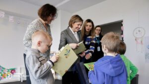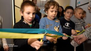 Po otwierającym przemówieniu Prezeski Fundacji Moniki Rościszewskiej-Woźniak w obecności Żony Ambasadora Ukrainy Viktorii Zvarych, I Sekretarz Ambasady Ukrainy w Polsce Tamilii Shutak, przedstawicieli UNICEF, Centrum Pomocy Humanitarnej Global EXPO oraz na oczach edukatorów i przyjaciół Fundacji wstążka w Spynce na Modlińskiej została przecięta przez samych jej podopiecznych.