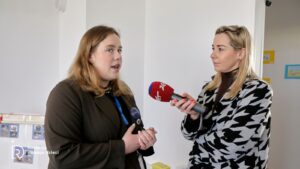 Chwile po przemówieniu o oparciu, jakie daje program SPYNKA: Żona Ambasadora Ukrainy w Polsce Viktoriia Zvarych i Prezeska Fundacji Monika Rościszewska-Woźniak
