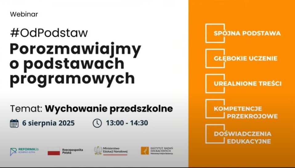 Monika Rościszewska-Woźniak, prezeska naszej Fundacji przewodniczy pracom zespołu ekspertek i ekspertów, pracujących nad nową podstawą programową dla przedszkoli. Prace koordynowane są przez Instytut Badań Edukacyjnych na zlecenie Ministerstwa Edukacji Narodowej. Warto podkreślić, że zdaniem nauczycielek i nauczycieli o przygotowaniu dziecka do rozpoczęcia nauki w szkole świadczą cztery zakresy kompetencji: społeczne…...