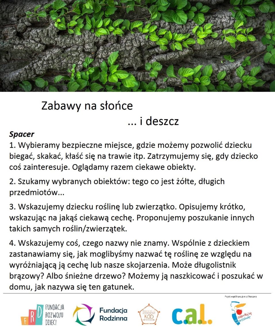 Zabawy na słońce i deszcz – propozycje Fundacji Rozwoju Dzieci cz. 1