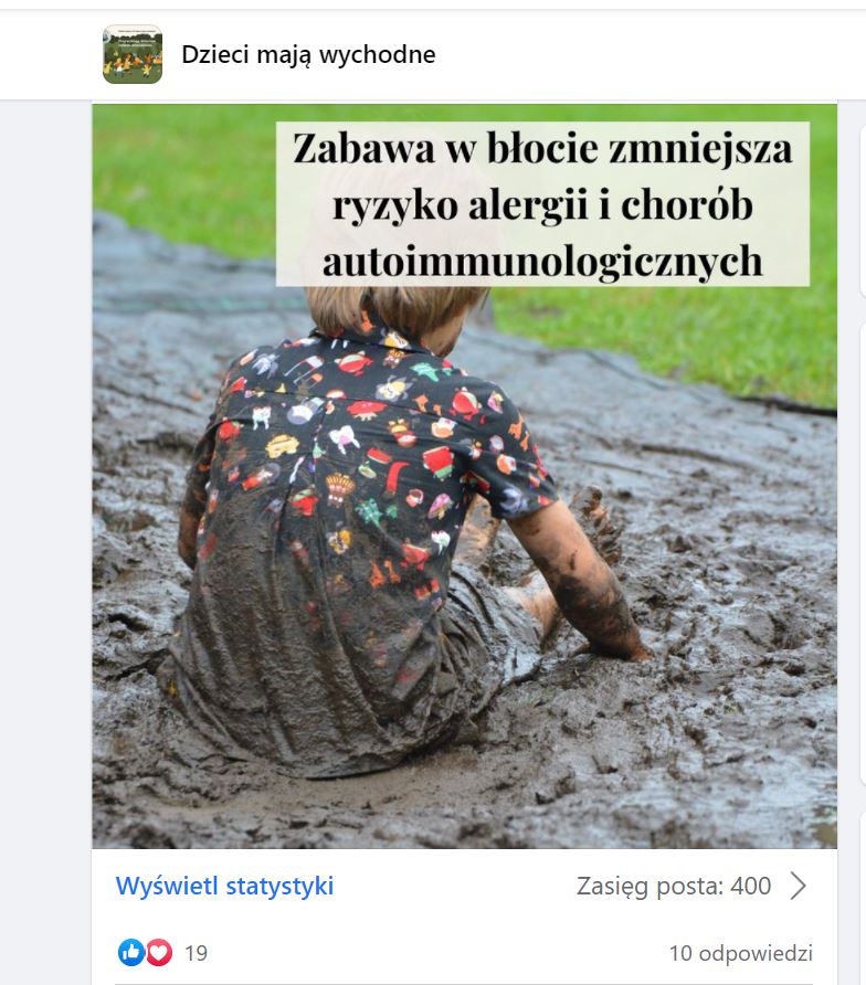 W marcu 2021 r. założylismy na naszym Facebooku grupę “Dzieci mają wychodne“. Zaprosiliśmy do niej wszystkich zainteresowanych ideą “wychodnego dzieci”, czyli regularnych długich pobytów dzieci na dworze, w kontakcie z naturą, praktykowanych zarówno przez placówki (przedszkola i szkoły), jak i rodziców. Okazało sie że ta idea jest bliska wielu (co najmniej 1100) ludziom i z tego się baaaardzo cieszymy. Zapraszamy, jeśli jeszcze tam nie zajrzeliście. Róbmy wychodne, wspierajmy się nawzajem!